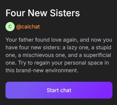 To start a chat, go to the profile of the selected character and click the Start chat button under their name. A chat will open where you’ll see a greeting. Reply to it, and the adventure will begin.